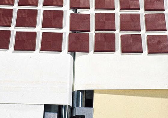 Transverse cleats made of PVC, polyurethane or polyester on top of a belt for inclined/declined transport. They prevent the material from sliding or falling.