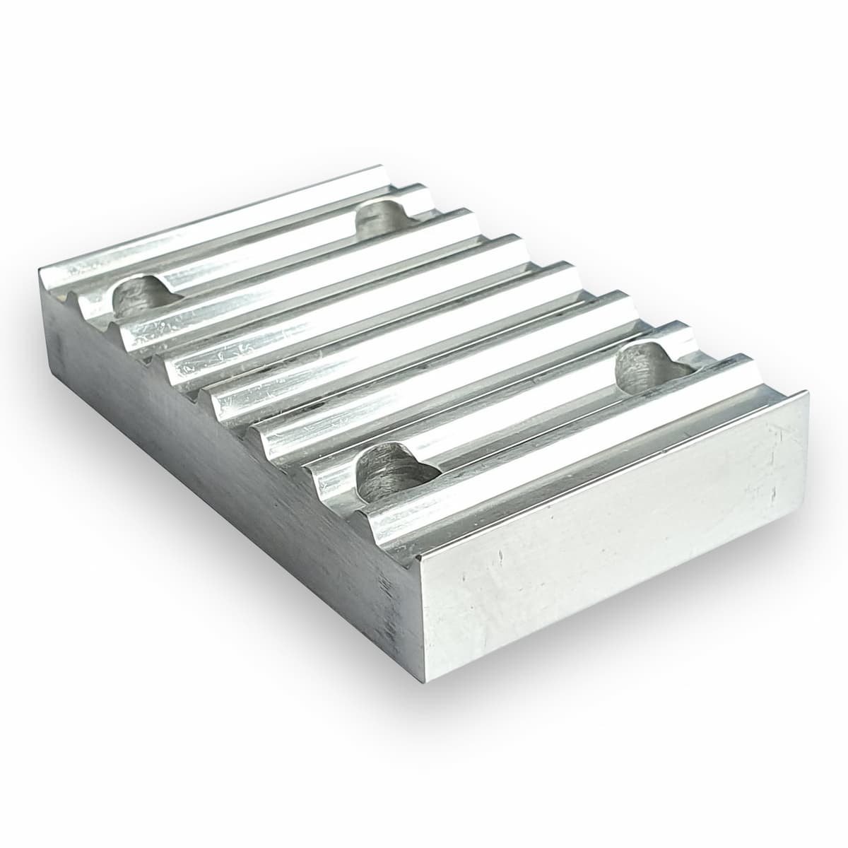 AT10-32 for Timing Belt (57 × 80 mm) is a fixing plate used to mechanically fasten a linear open-ended timing belt in AT10 profile to the base of the machine. It is made of aluminium alloy.