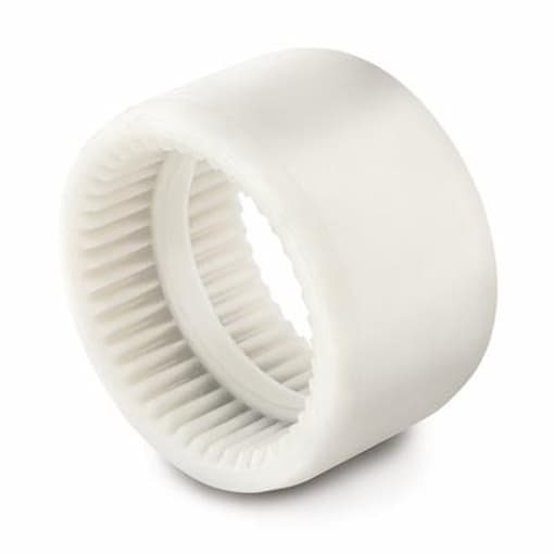 BX are torsionally flexible, puncture-proof shaft couplings with two metal hubs and a polyamide sleeve with internal gearing. They transmit torque through pressure-stressed elastic ring which absorbs shock and torsional vibration. This element is oil resistant and electrically conductive.
