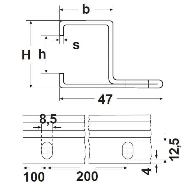 C-14 - 47 × 31 mm (Zinc Plated, L = 2000 mm) is a standardized metal C-profile used mainly for attaching plastic guides of chains or belts to the machine. It is made of steel.