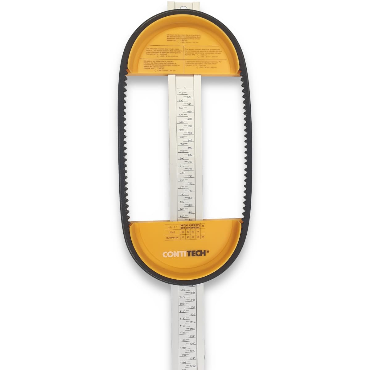 This gauge is used to determine the internal length Li of belts in the range from 500 to 2600 mm. It is suitable for a very wide range of industrial belts.