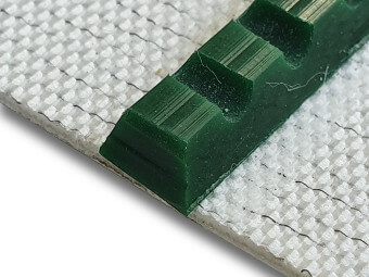 Profiles made of PVC, polyurethane or polyester are welded or glued to the bottom side of the conveyor belt.