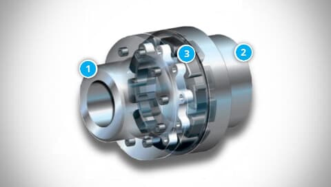 - Compensates for angular, parallel and axial shaft misalignments of the connected machines