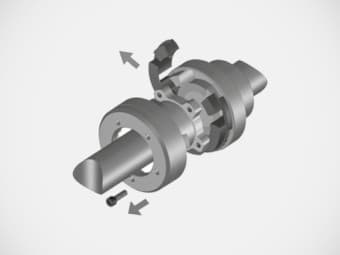 - Replacement of elastic elements without axial movement of the coupled machines (principle of the multi-part design)
