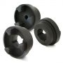 HRC are torsionally flexible, puncture-proof shaft couplings with two metal hubs with front claws and a rubber element. They transmit torque through pressure-stressed elastic star-shaped buffer which absorbs shock and torsional vibration. This element is oil resistant and electrically conductive. HRC coupling hubs are made of grey cast iron as unbored, with a pilot bore or for fixing with Taper Lock bushes.