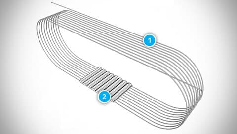 The base of the belt is made of steel tensile fiber, in special cases aramid or stainless steel, which is without any connection (endless). The teeth and spine of the belt are made of thermoplastic polyurethane.