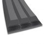 The belts are made of highly durable polyurethane and special polyester tension member. The diagonally grooved back optimizes flexibility. These grooves are reinforced with a synthetic fiber canvas.