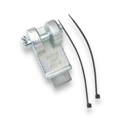 ZV 025 KB KRZ (for CONTI POLYFLAT, Short Type) are wedge sockets used for fastening CONTI POLYFLAT flat belts and CONTI POLYROPE elevator belts. They consist of a cast iron housing in which the flat belt is inserted and secured with a special wedge against loosening. Depending on the method of attachment, they can be fixed with a bolt or with a bolt and a spring.