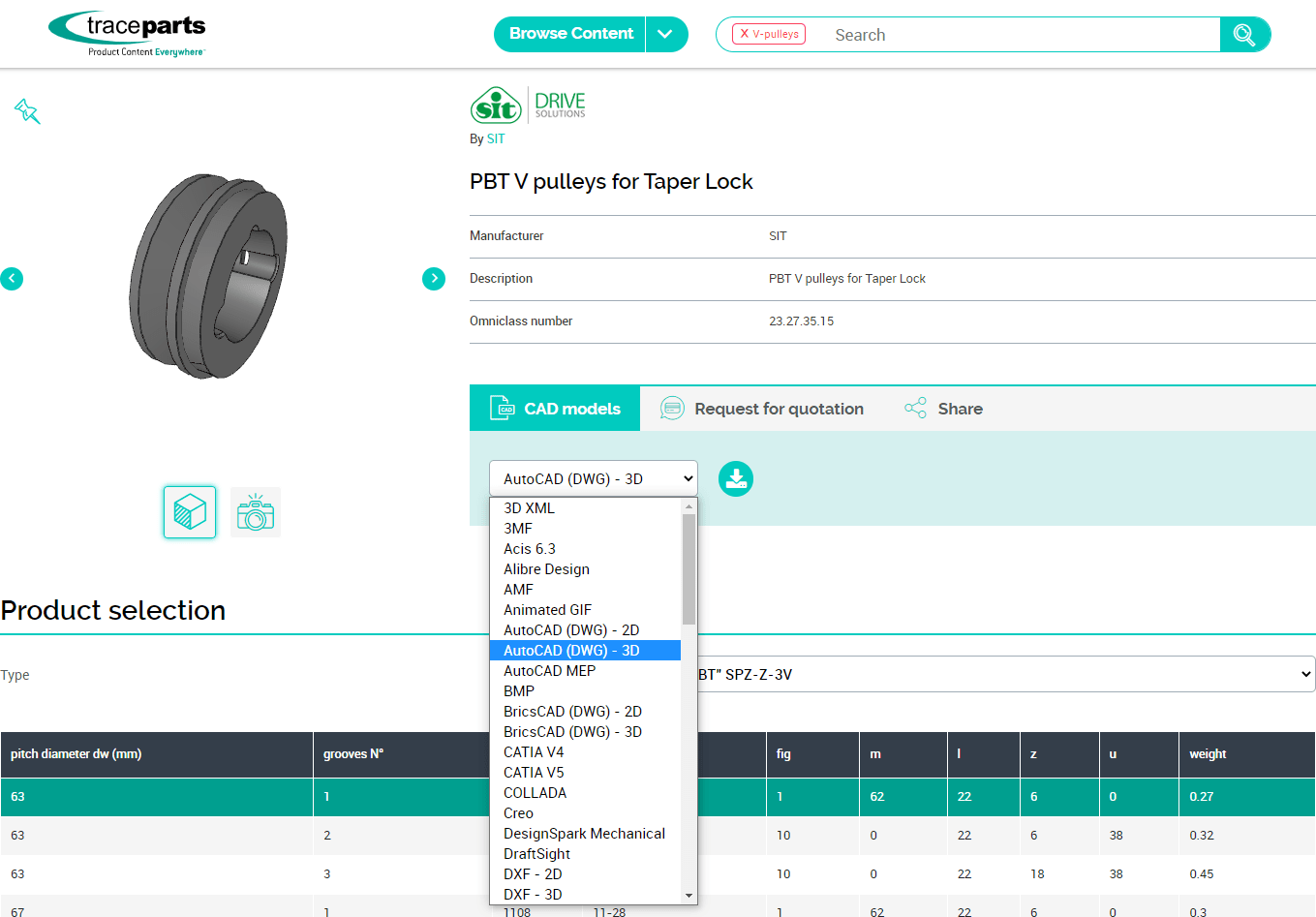 You are free to download CAD drawings of timing and V-belt pulleys, and clamping bushes from our supplier SIT, which are available at TraceParts.