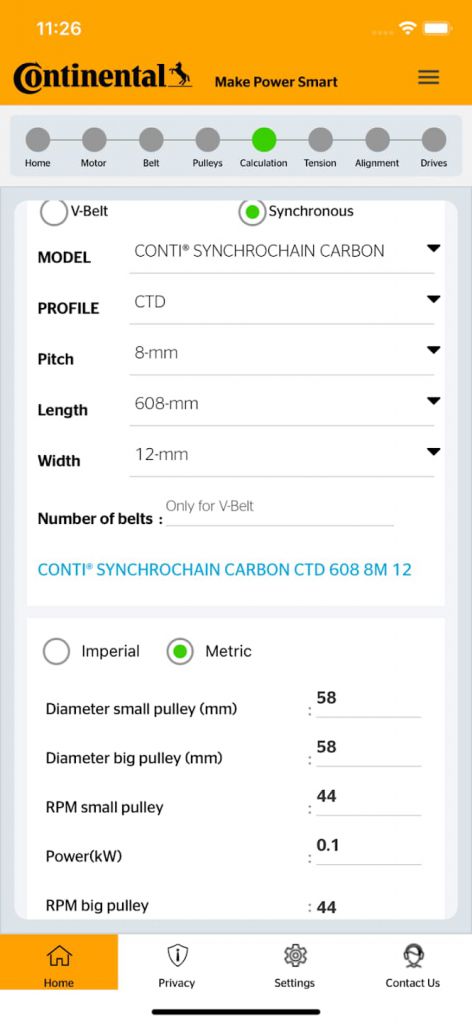Easily calculate and select a belt for a two-pulley drive system. - Engine